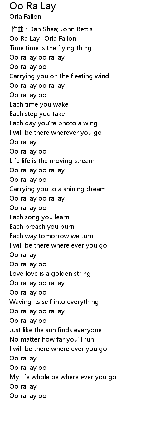 | [00:00.00] | Oo Ra Lay Orla Fallon |