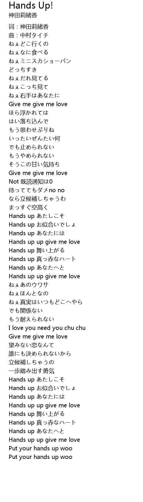| [02:14.505] | Hands up あたしこそ |