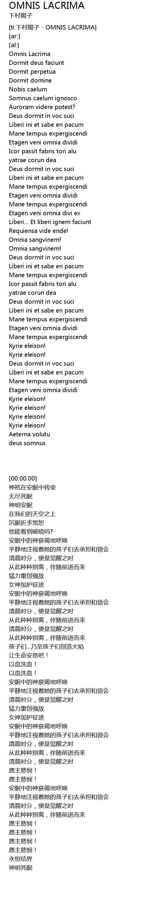 | [00:00.00] | Omnis Lacrima |
