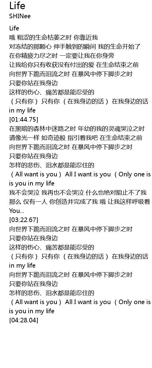 | [01:33.05] | (只有你) 只有你 (在我身边的话) 在我身边的话 in my life |