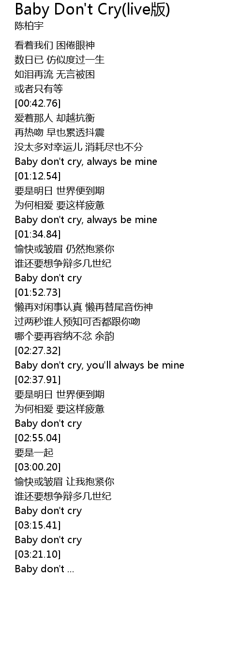 | [03:17.91] | Baby don' t cry |