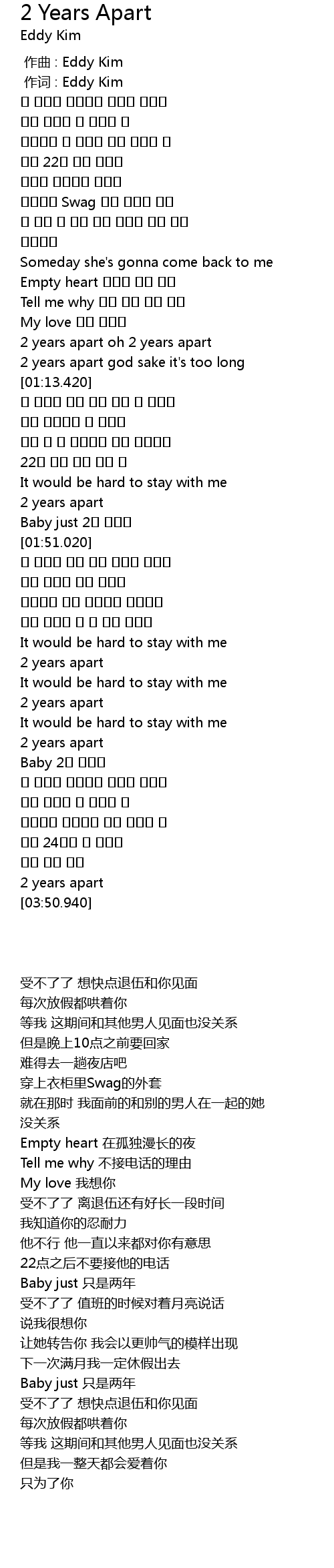| [00:01.00] | zuò cí : Eddy Kim |