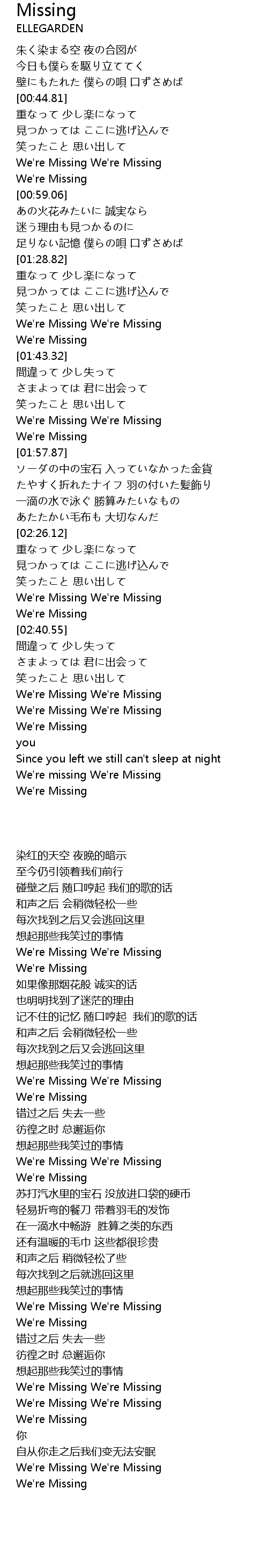 | [03:03.26] | Since you left we still can' t sleep at night |