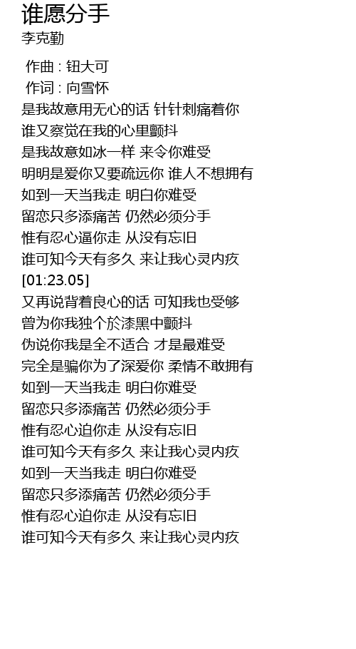 | [00:57.37] | 留恋只多添痛苦 仍然必须分手 |