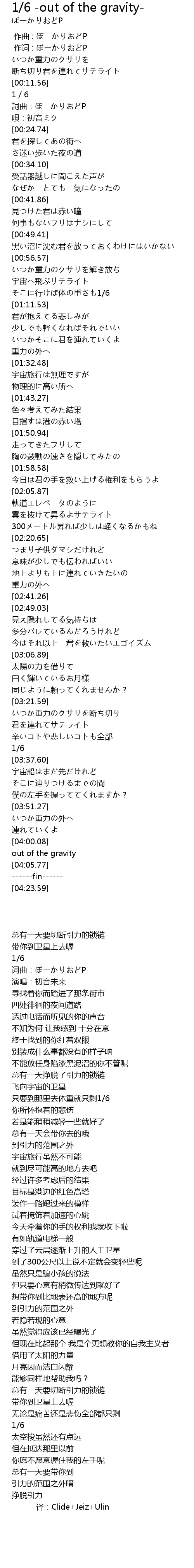 | [00:56.79] | いつか重力のクサリを解き放ち |