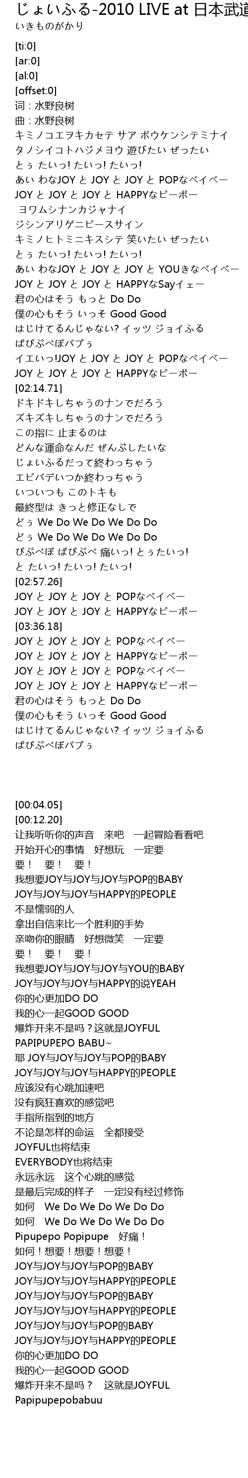 | [02:09.11] | JOY と JOY と JOY と HAPPYなピーポー |