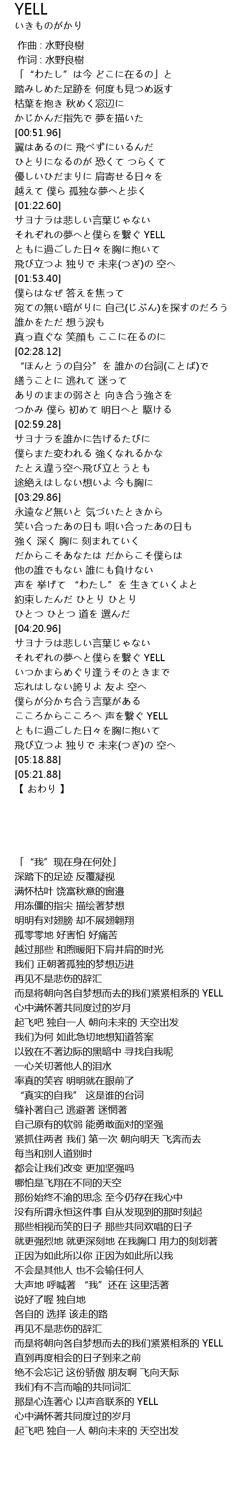 | [04:30.01] | それぞれの夢へと僕らを繋ぐ YELL |