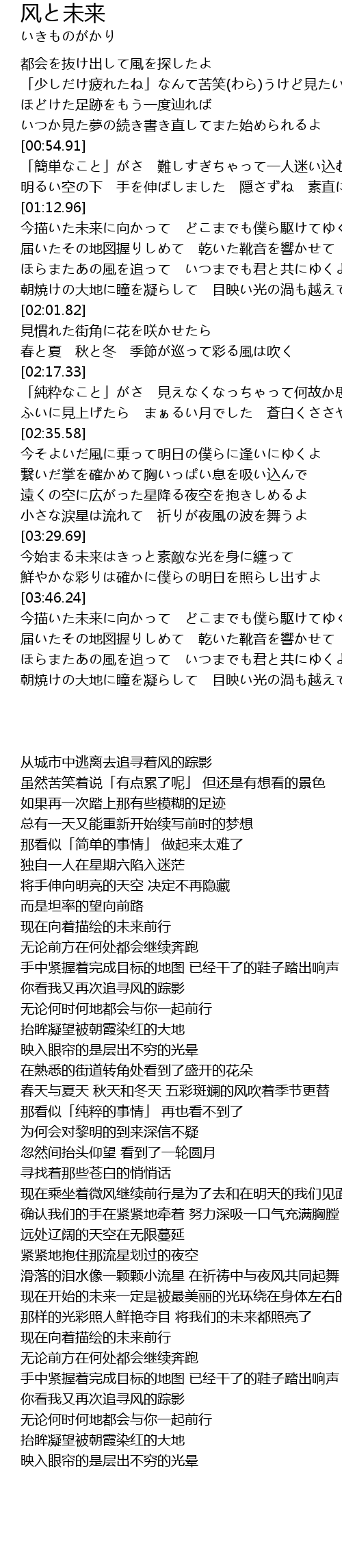 | [04:02.67] | ほらまたあの風を追って いつまでも君と共にゆくよ |