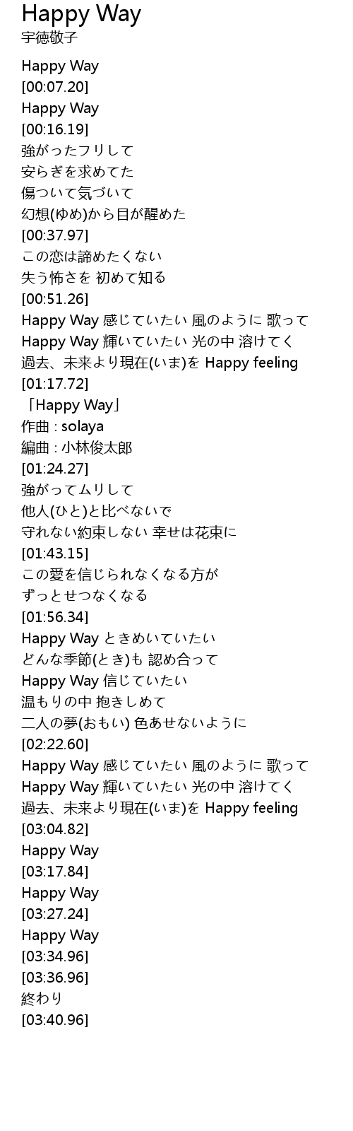 | [02:39.15] | Happy Way 感じていたい 風のように 歌って |