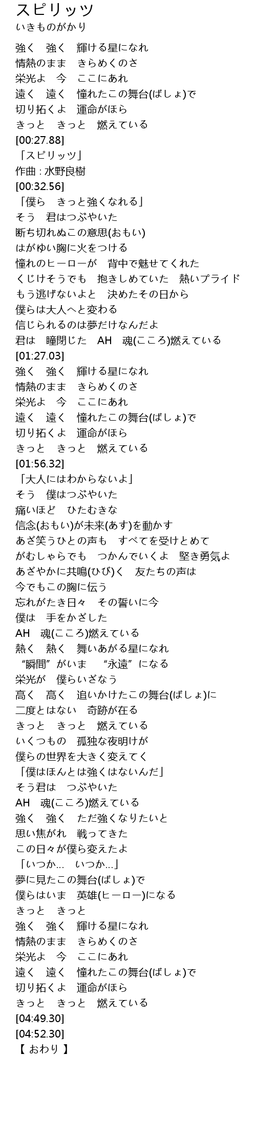 | [00:28.56] | 「スピリッツ」 |