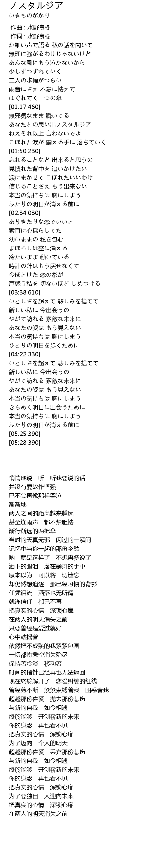 | [01:25.860] | あなたとの思い出ノスタルジア |