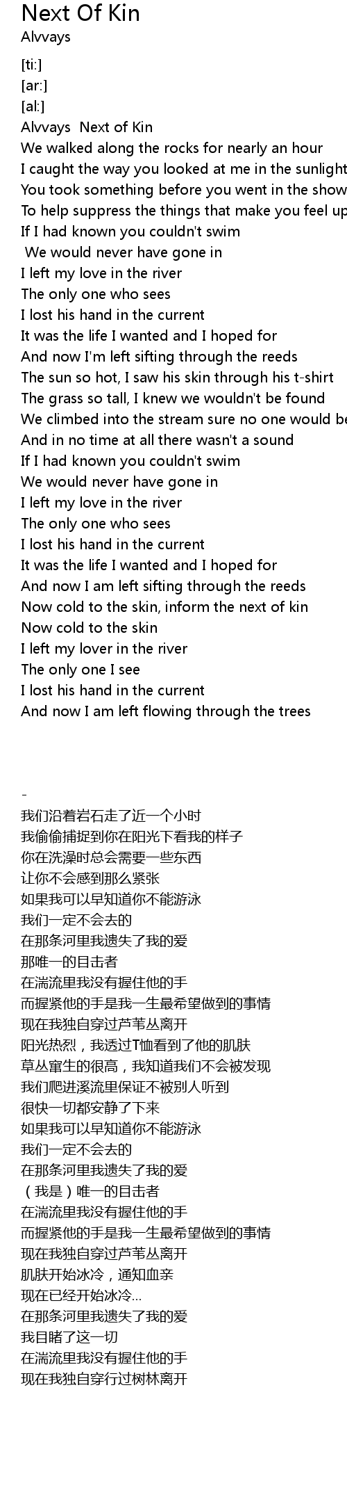 | [00:00.00] | Alvvays Next of Kin |