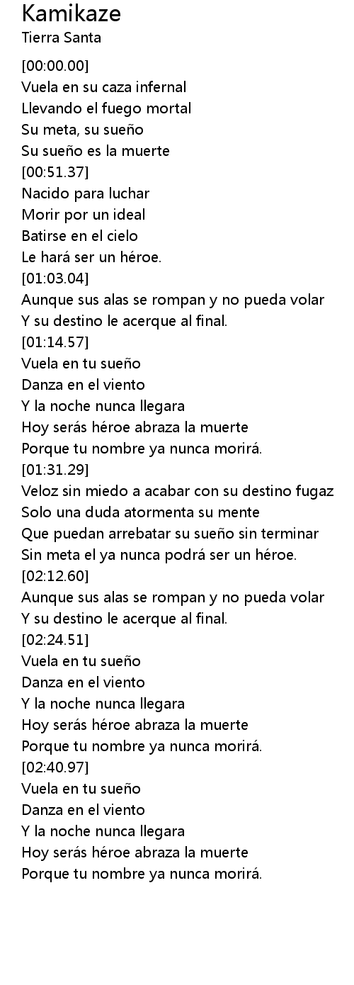 | [02:33.54] | Hoy será s hé roe abraza la muerte |