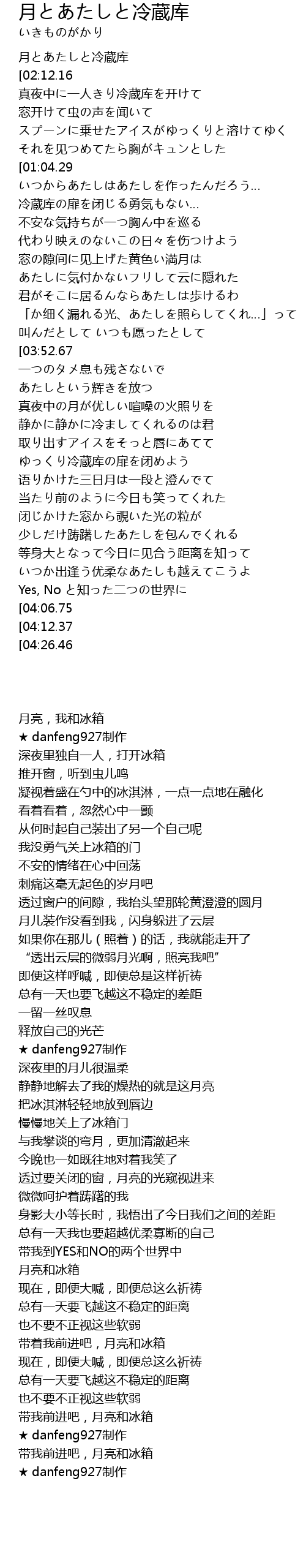 | [00:01.00] | 月とあたしと冷蔵库 |