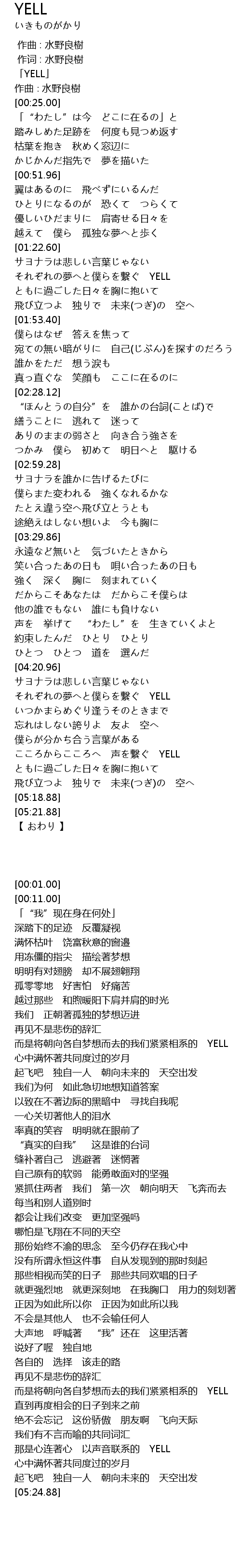 | [00:01.00] | 「YELL」 |