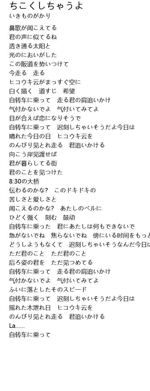 | 自转车に乘って 迟刻しちゃいそうだよ今日は | |