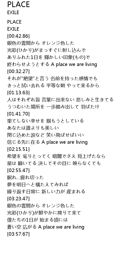 | [03:46.15] | 蒼い空 広がる A place we are living |