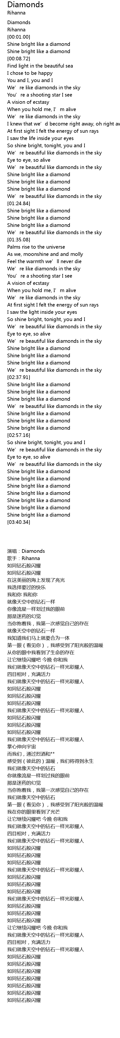 | [03:35.47] | Shine bright like a diamond |