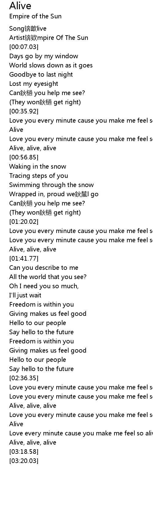 | [02:45.01] | Love you every minute cause you make me feel so alive, alive |