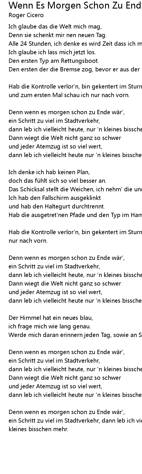 | Song | Wenn Es Morgen Schon Zu Ende Waer' |