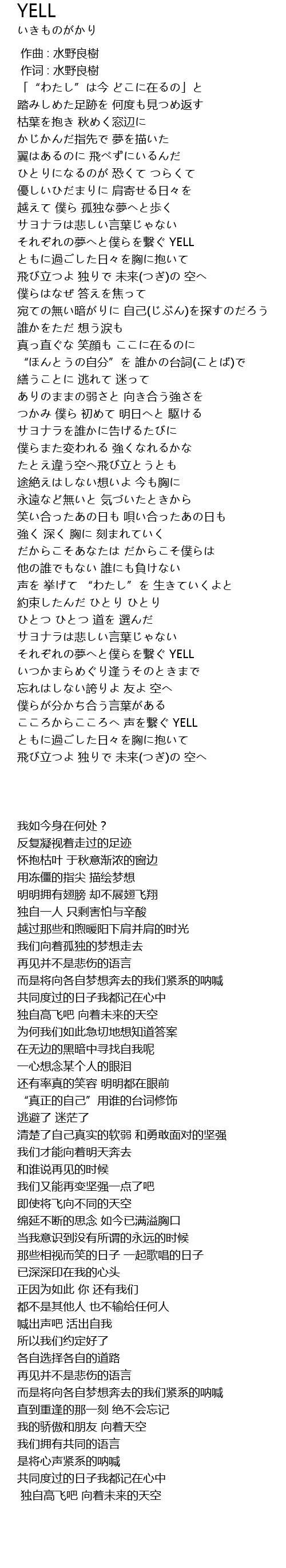 | [04:32.100] | それぞれの夢へと僕らを繋ぐ YELL |