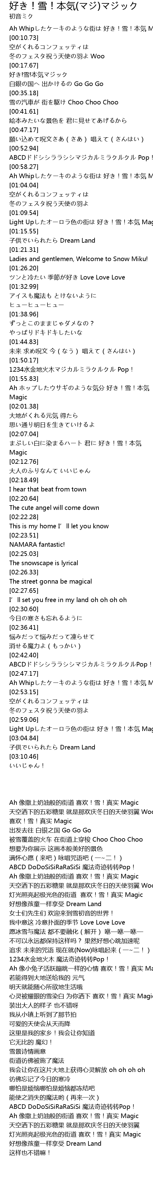 | [02:59.33] | Light Up sè jiē hǎo! xuě! běn qì Magic |