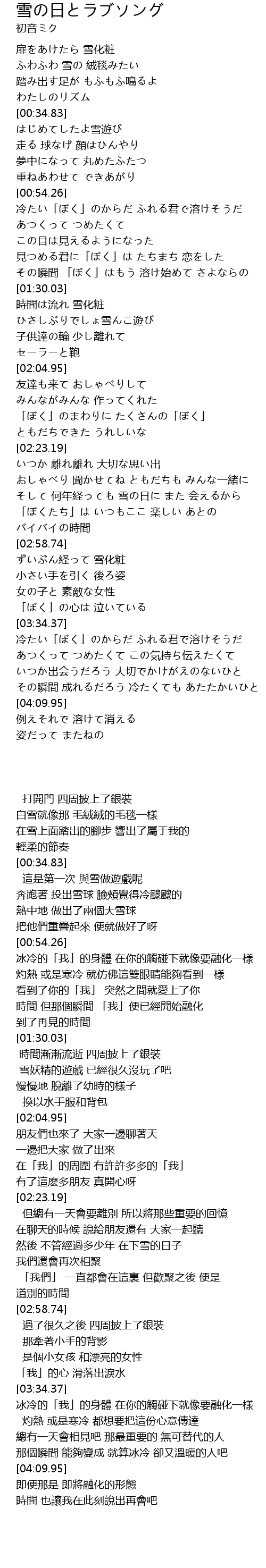 | [01:52.14] | ひさしぶりでしょ雪んこ遊び |