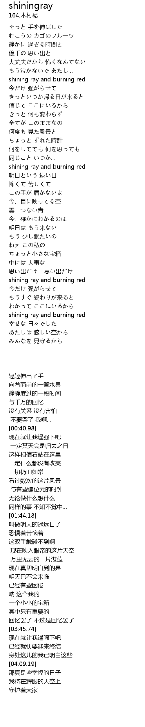 | [04:09.19] | shining ray and burning red |