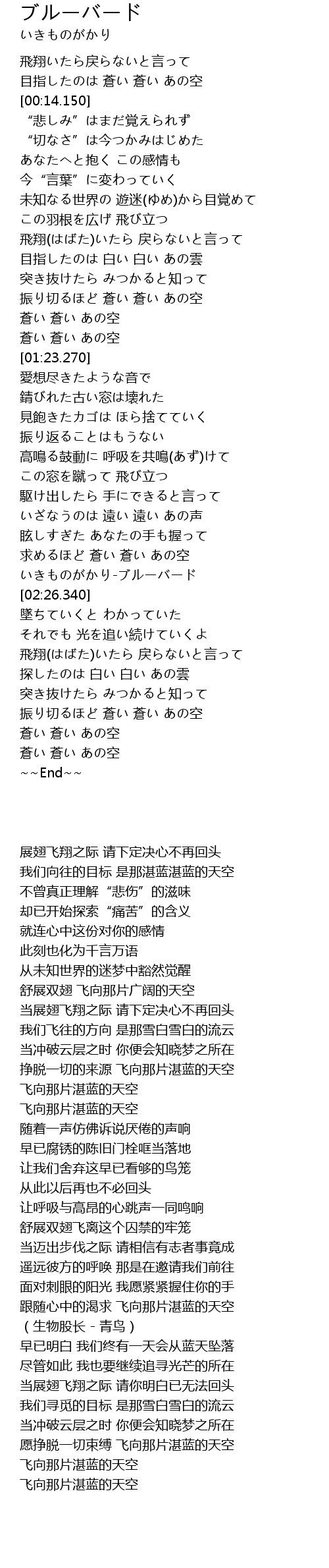 | [02:20.160] | いきものがかり-ブルーバード |