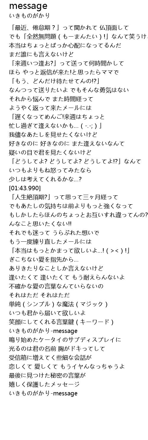 | [01:08.720] | 忙し過ぎて逢えないかも…(-.-;)」 |
