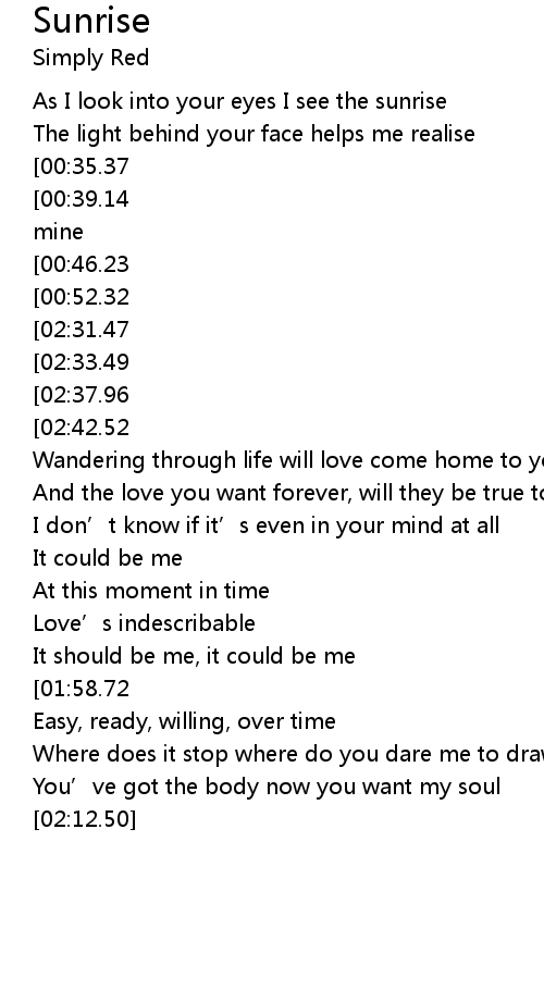 | [00:22.06] | As I look into your eyes I see the sunrise |