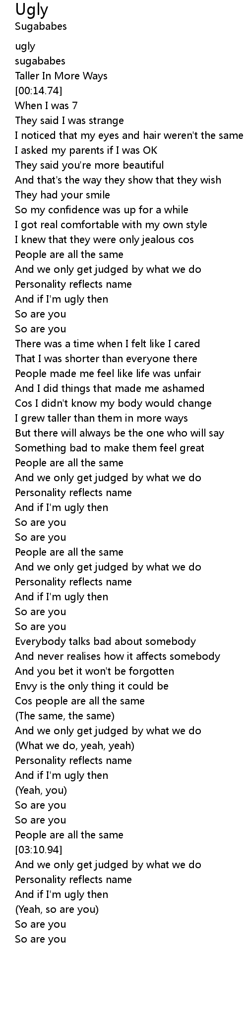 And if I'm ugly then |