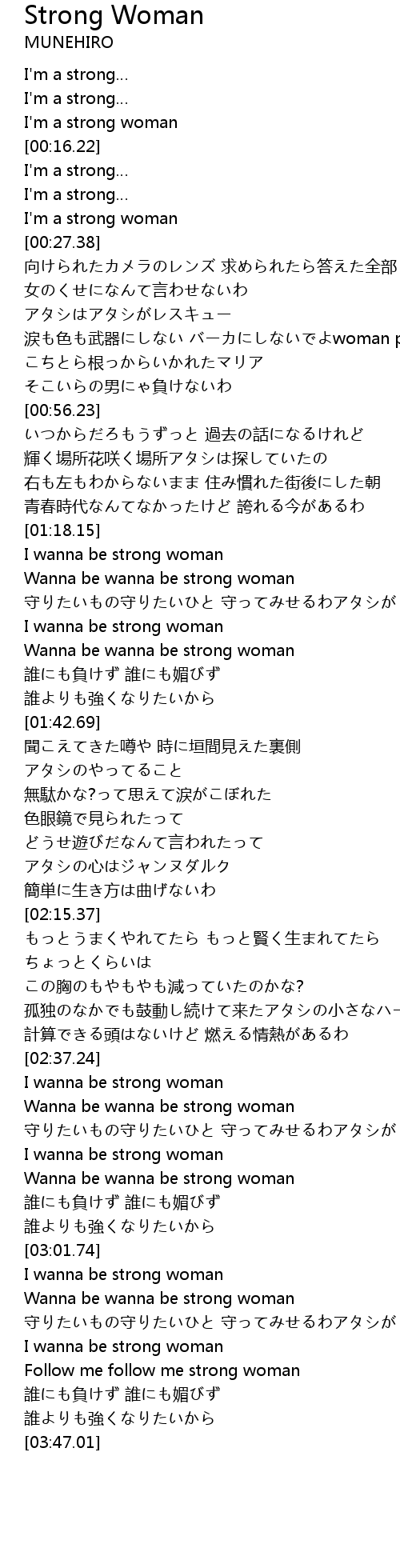 | [03:26.31] | Wanna be wanna be strong woman |