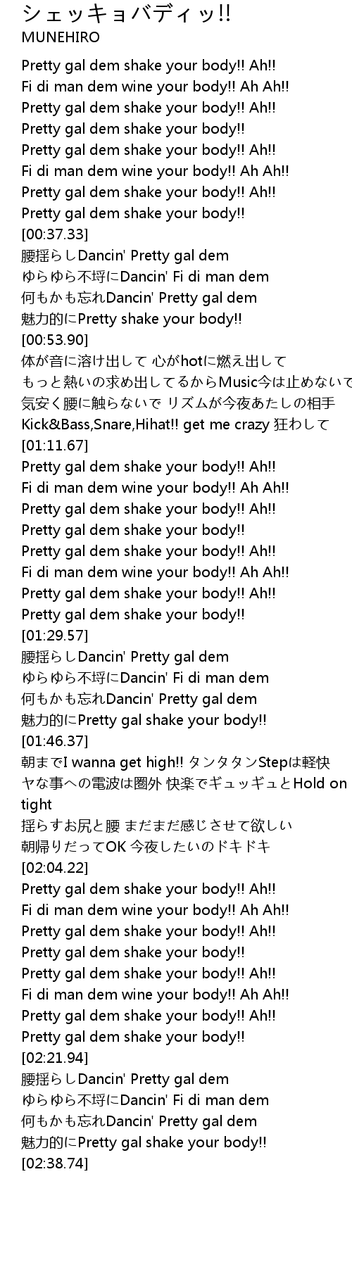 | [00:35.21] | Pretty gal dem shake your body!! |