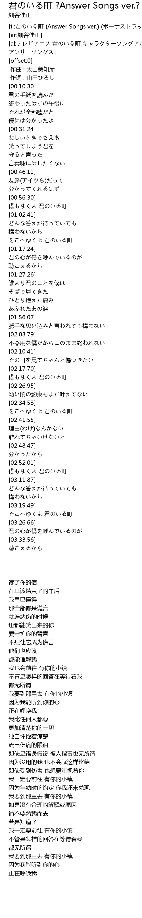 | [ti:君のいる町 (Answer Songs ver.) (ボーナストラック)] | |