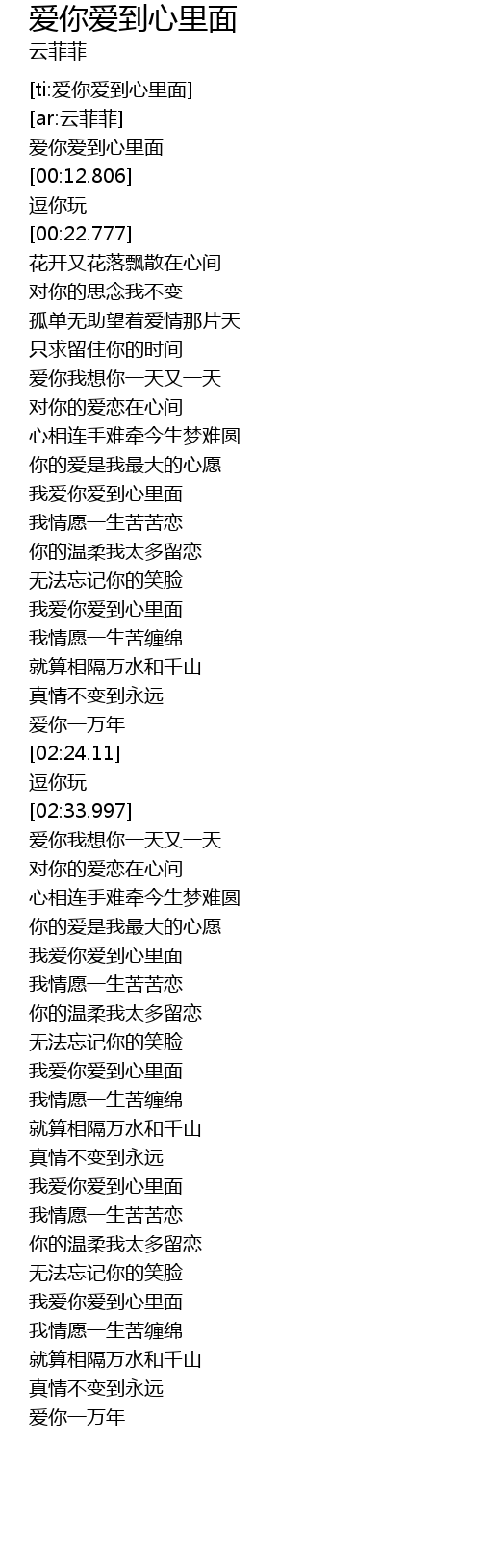 | [03:25.609] | wo ai ni ai dao xin li mian |