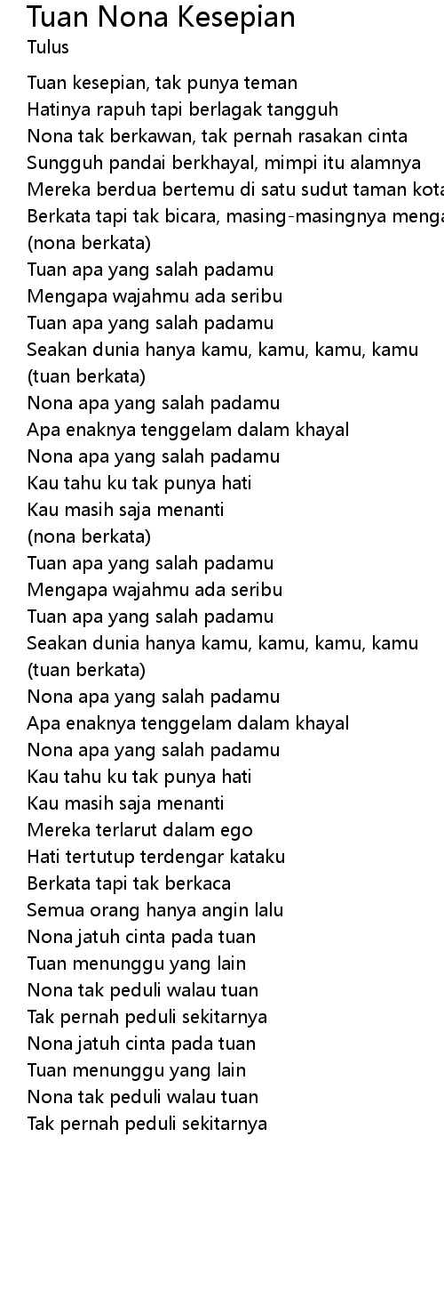 | Nona tak berkawan, tak pernah rasakan cinta | |