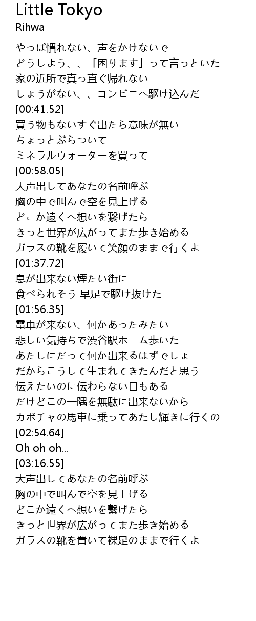 | [02:03.56] | 悲しい気持ちで渋谷駅ホーム歩いた |