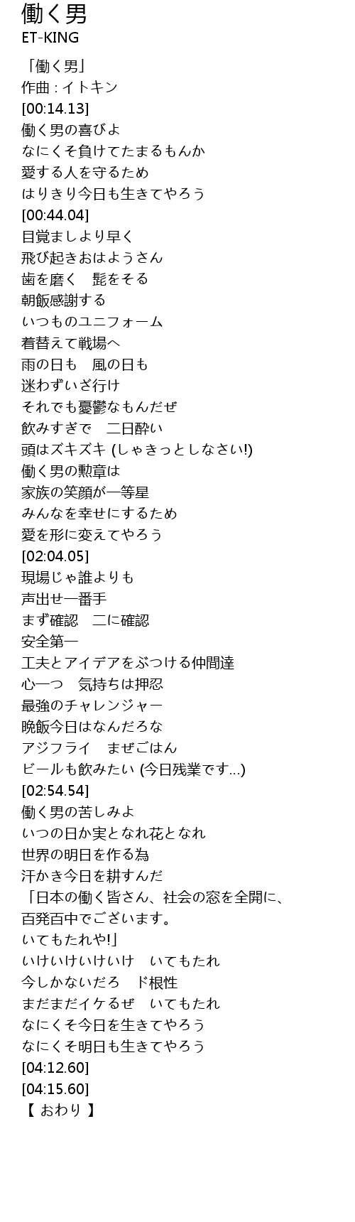 | [04:05.34] | なにくそ明日も生きてやろう |