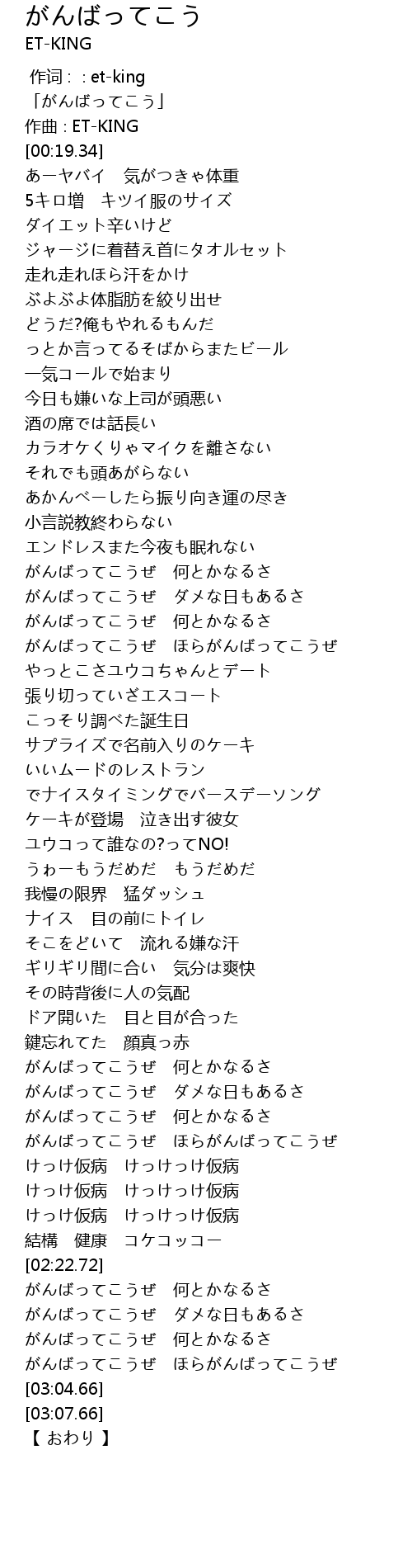 | [02:04.07] | がんばってこうぜ 何とかなるさ |