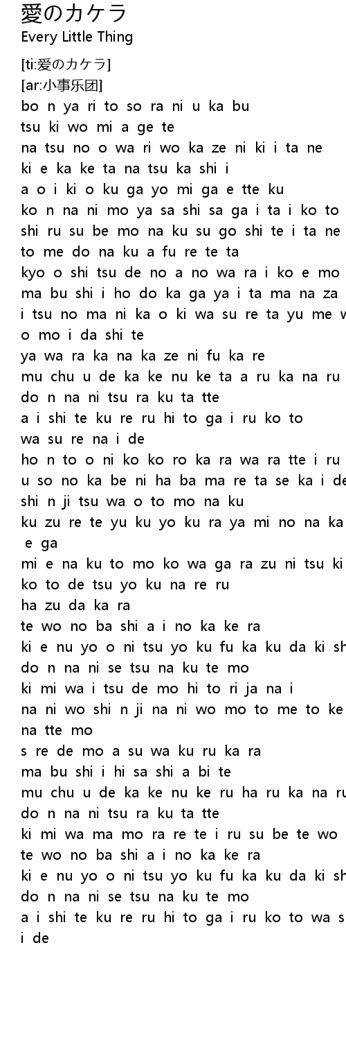| [02:44.440] | te wo no ba shi a i no ka ke ra |
