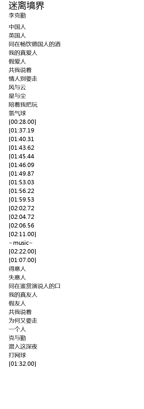 | [02:34.65][01:43.62][00:39.60] | 其实我也不知 |