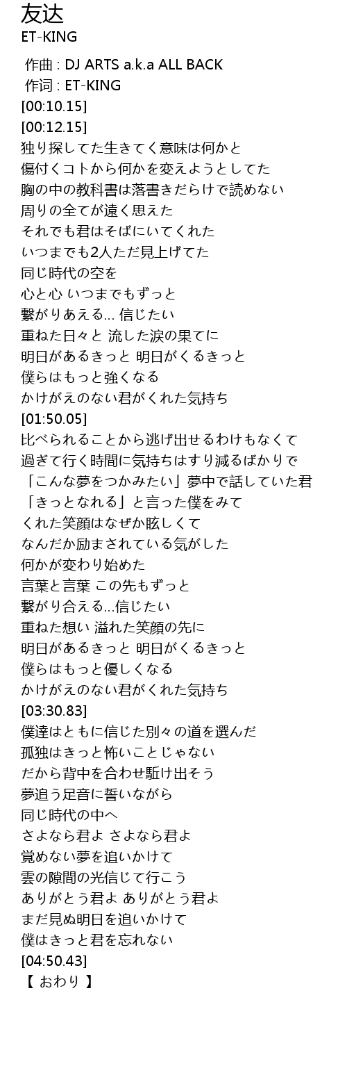 | [04:27.00] | ありがとう君よ ありがとう君よ |