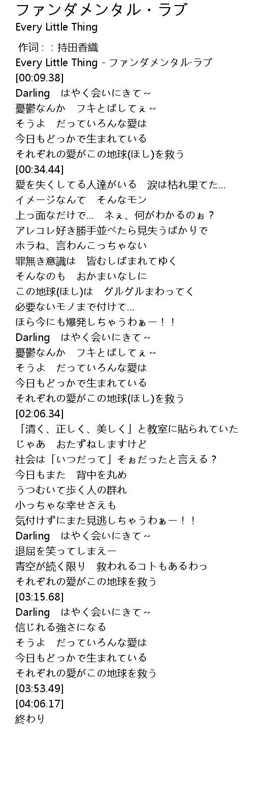 | [00:00.00] | Every Little Thing - ファンダメンタル·ラブ |