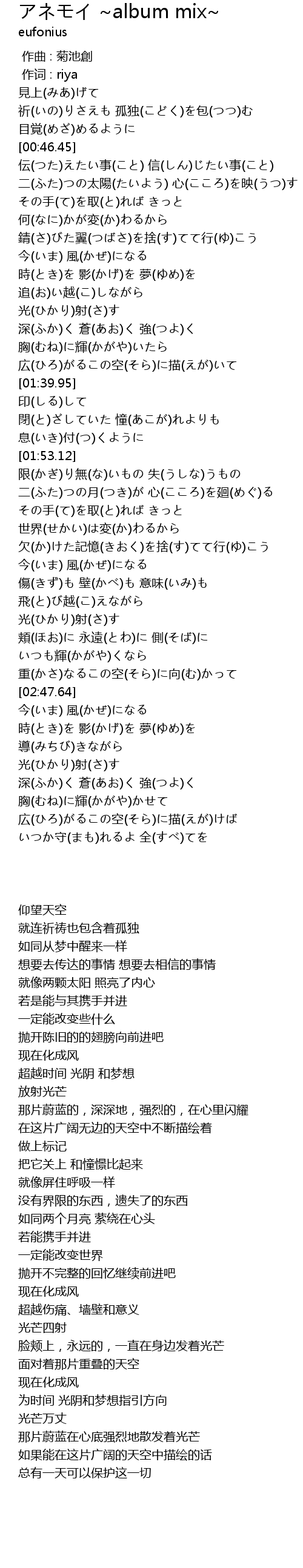 | [01:20.85] | 光(ひかり)射(さ)す |