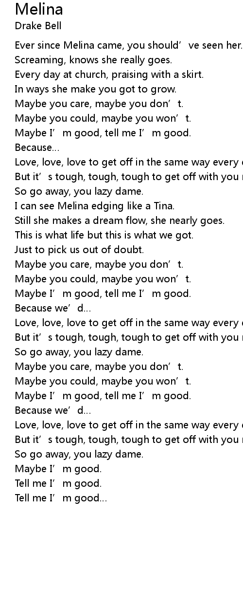 | Maybe I’m good, tell me I’m good. | |