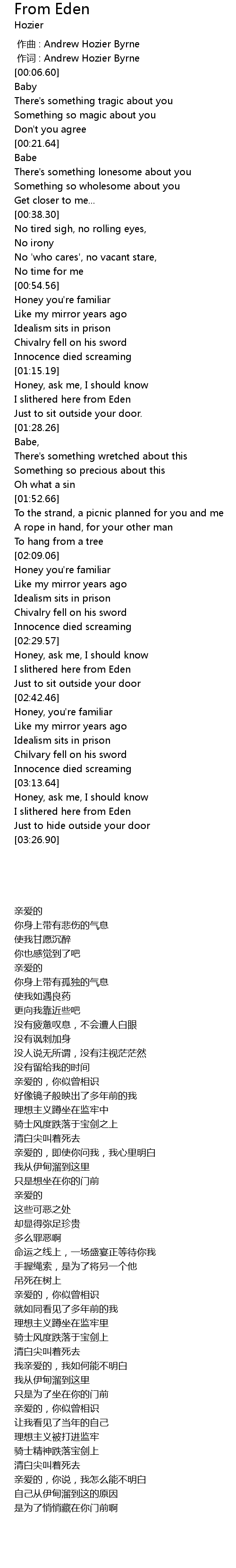 | [00:01.00] | zuò cí : Andrew Hozier Byrne |