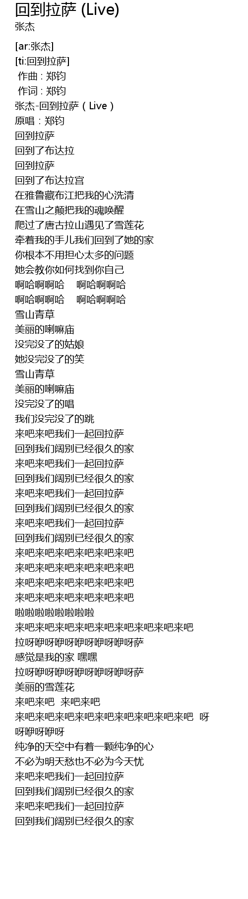 | [00:05.57] | 张杰-回到拉萨(Live) |