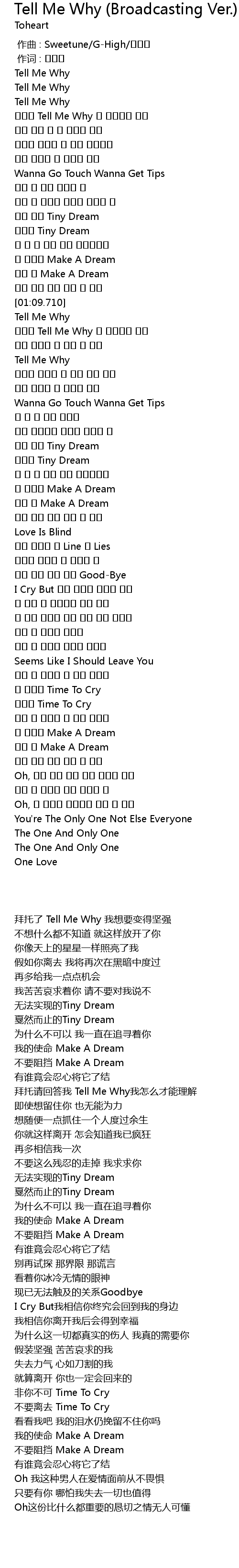 | [01:13.560] | Tell Me Why |