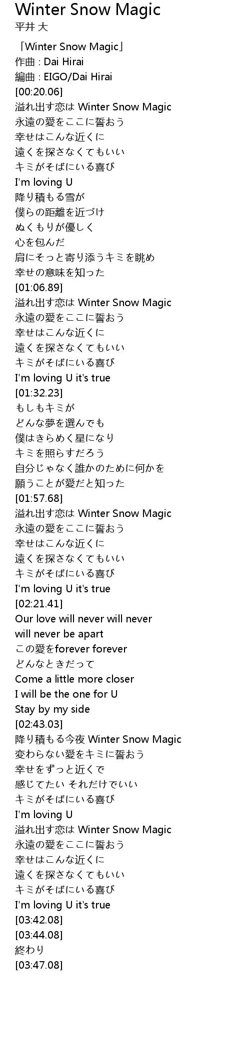 | [03:06.24] | 溢れ出す恋は Winter Snow Magic |